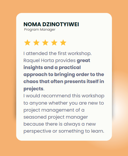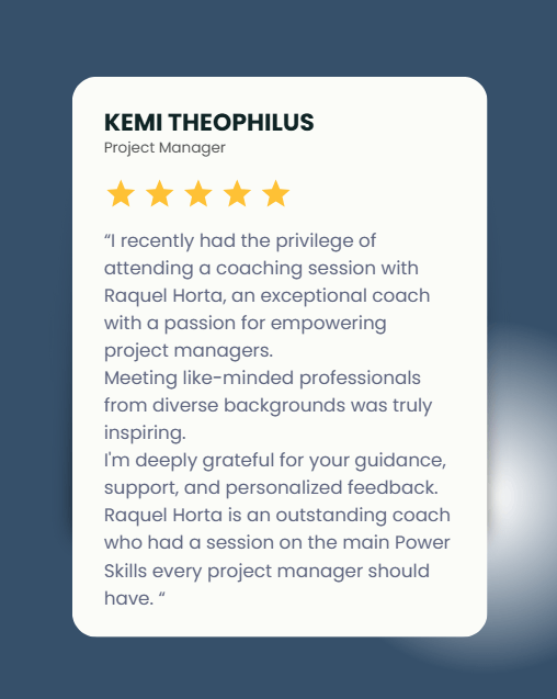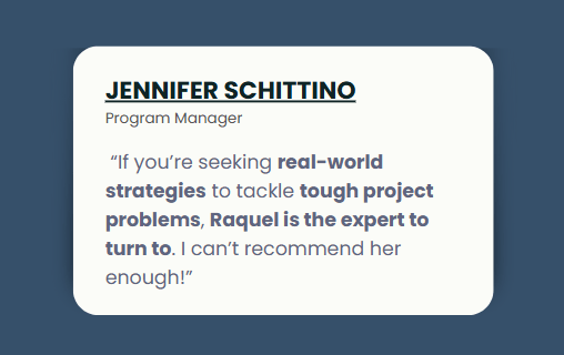 I'm Raquel, and I coach Project and Program Managers to develop their Power Skills.